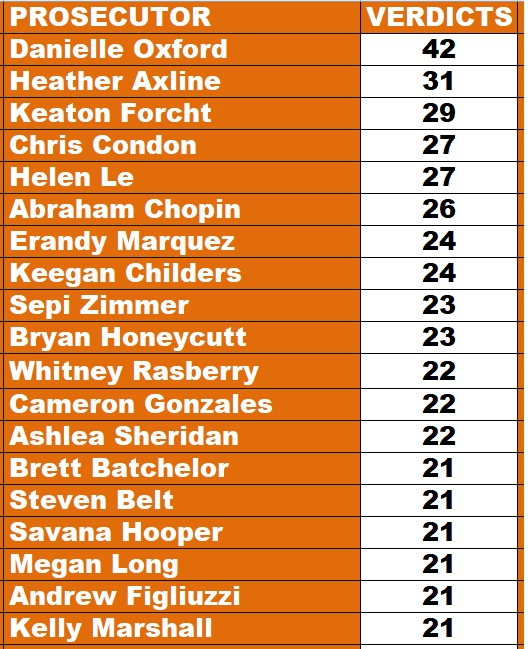 Leading Prosecutors for Winning Felony and Misdemeanor Verdicts for 2026
