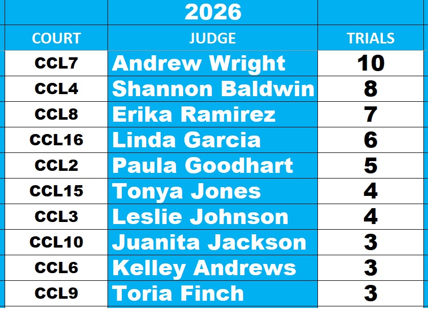 Leading Defense Attorneys for Winning Felony and Misdemeanor Verdicts since February 2017 – OVER 2,000 PRACTICING DEFENSE ATTORNEYS at the Harris County Criminal Courthouse (stats taken from above spreadsheet)