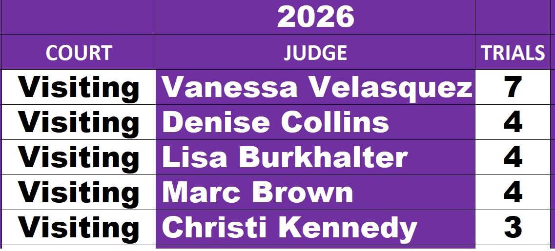 I publish trials in progress, trial verdicts, in-trial pleas and dismissals, trial setting dismissals, trial standings, judge standings, lawyer statistics, lawyer standings, photos and other court news and nuggets.