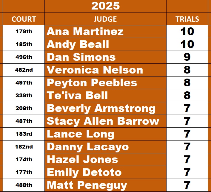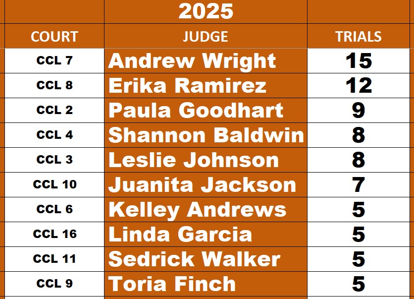 All Elected Misdemeanor Judges and their trial totals for 2025
