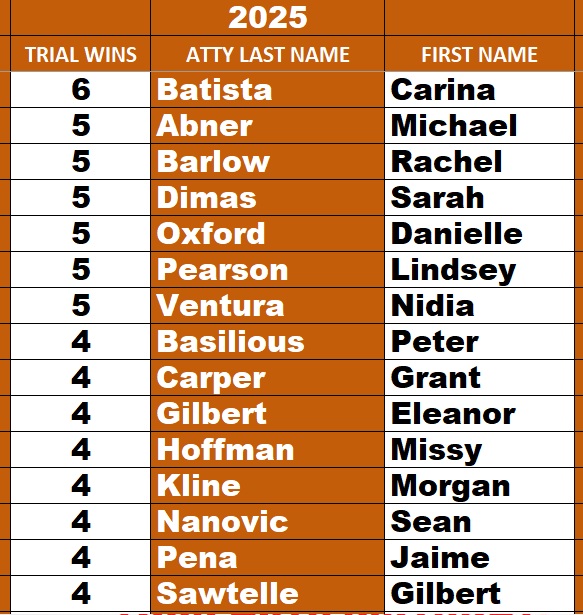 DEFENSE ATTORNEY LEADERBOARD 2025
