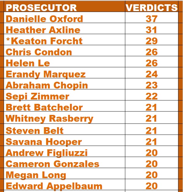 Leading Prosecutors for Winning Felony and Misdemeanor Verdicts since February 2017