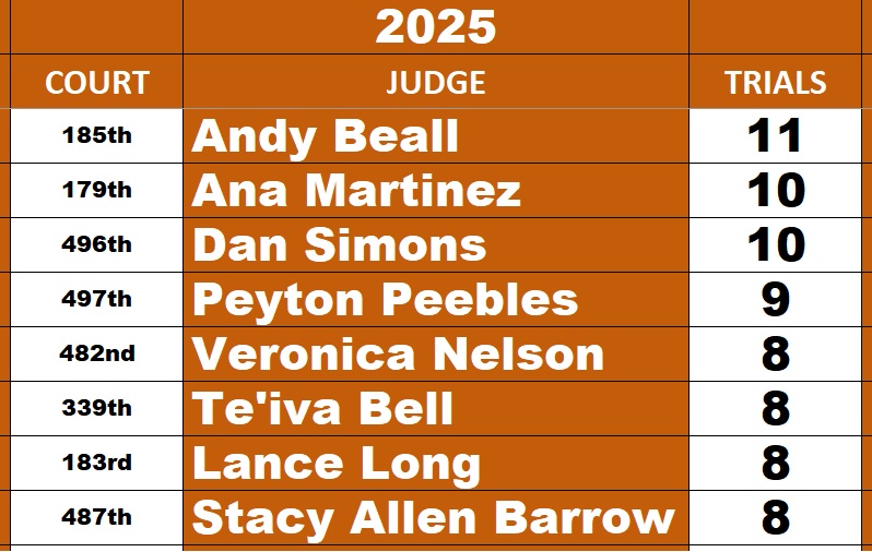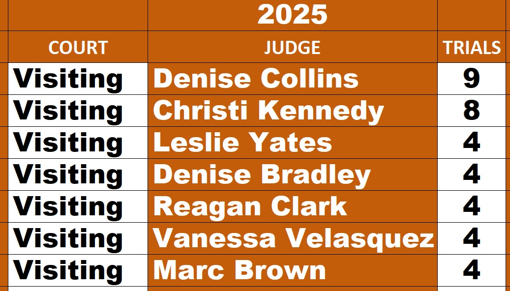All Elected Misdemeanor Judges and their trial totals for 2025