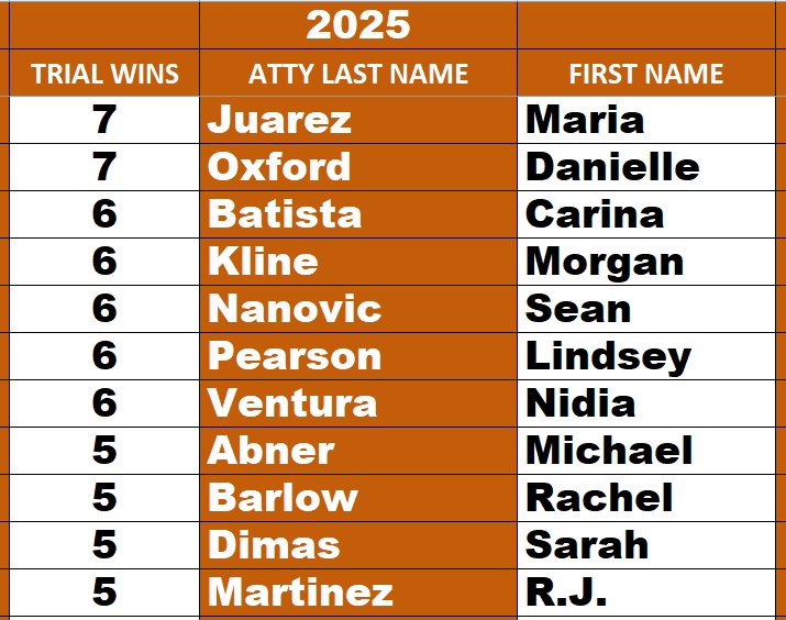 Leading Prosecutors for Winning Felony and Misdemeanor Verdicts for 2025