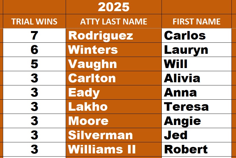 DEFENSE ATTORNEY LEADERBOARD 2025