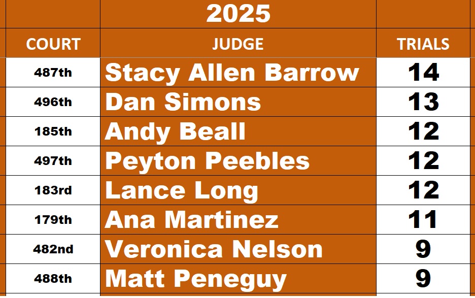 All Elected Felony Judges and their trial totals for 2025