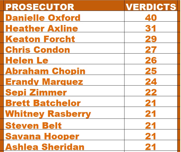 Leading Prosecutors for Winning Felony and Misdemeanor Verdicts for 2025