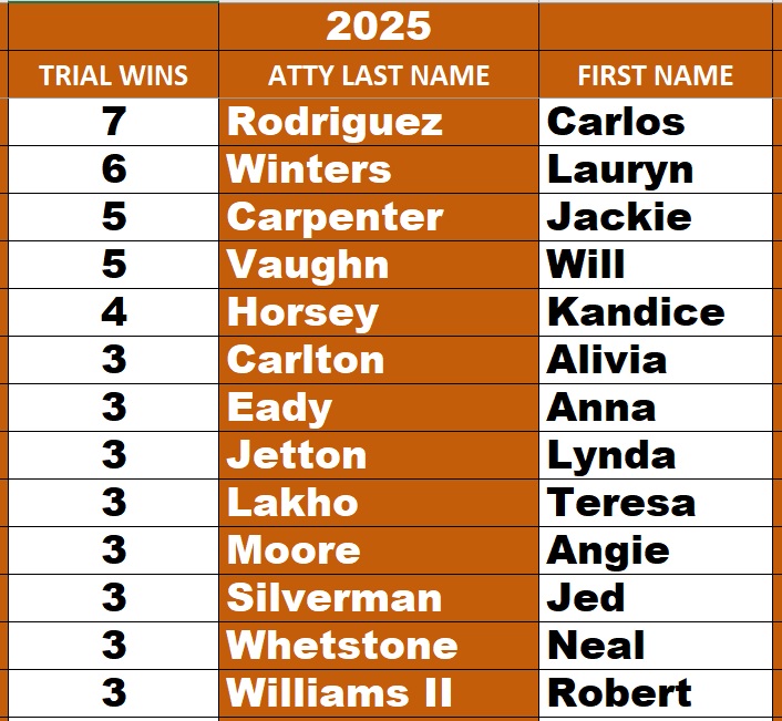 DEFENSE ATTORNEY LEADERBOARD 2025
