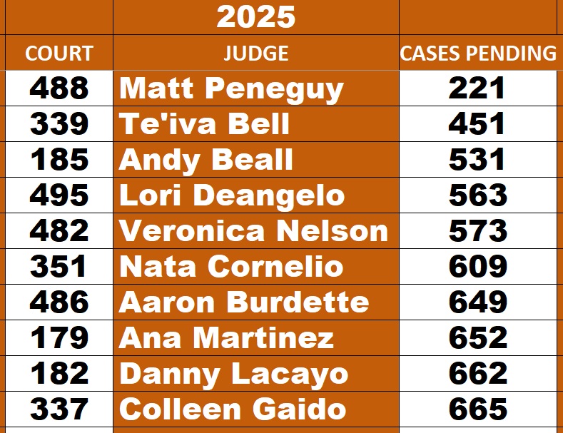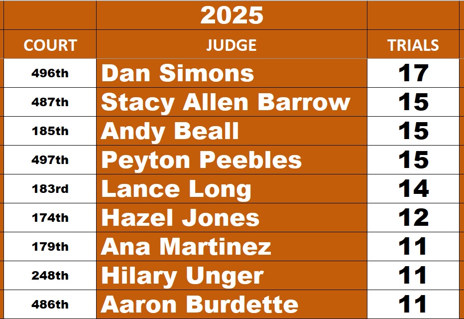 All Elected Felony Judges and their trial totals for 2025
