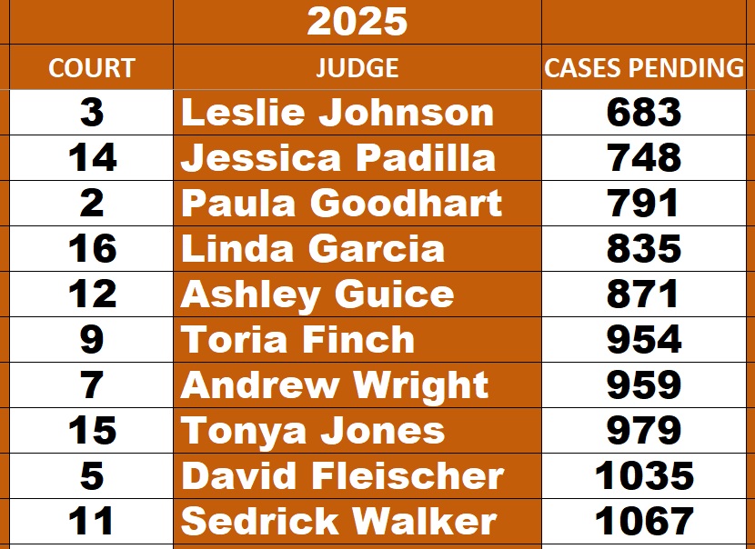 Top 10 Misdemeanor Courts for LOWEST docket totals September 2025 – source: Harris County Courts Active Cases Report