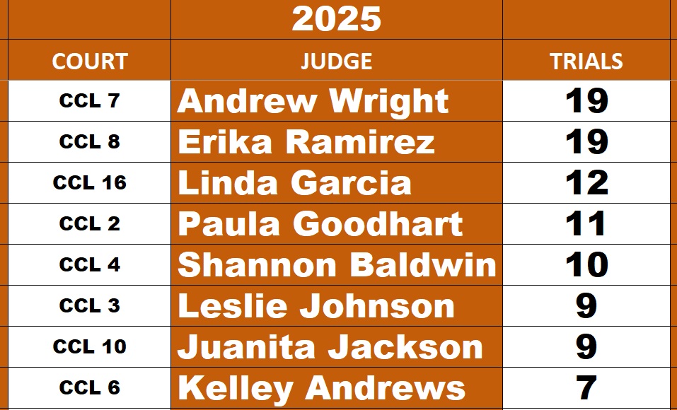 All Elected Misdemeanor Judges and their trial totals for 2025